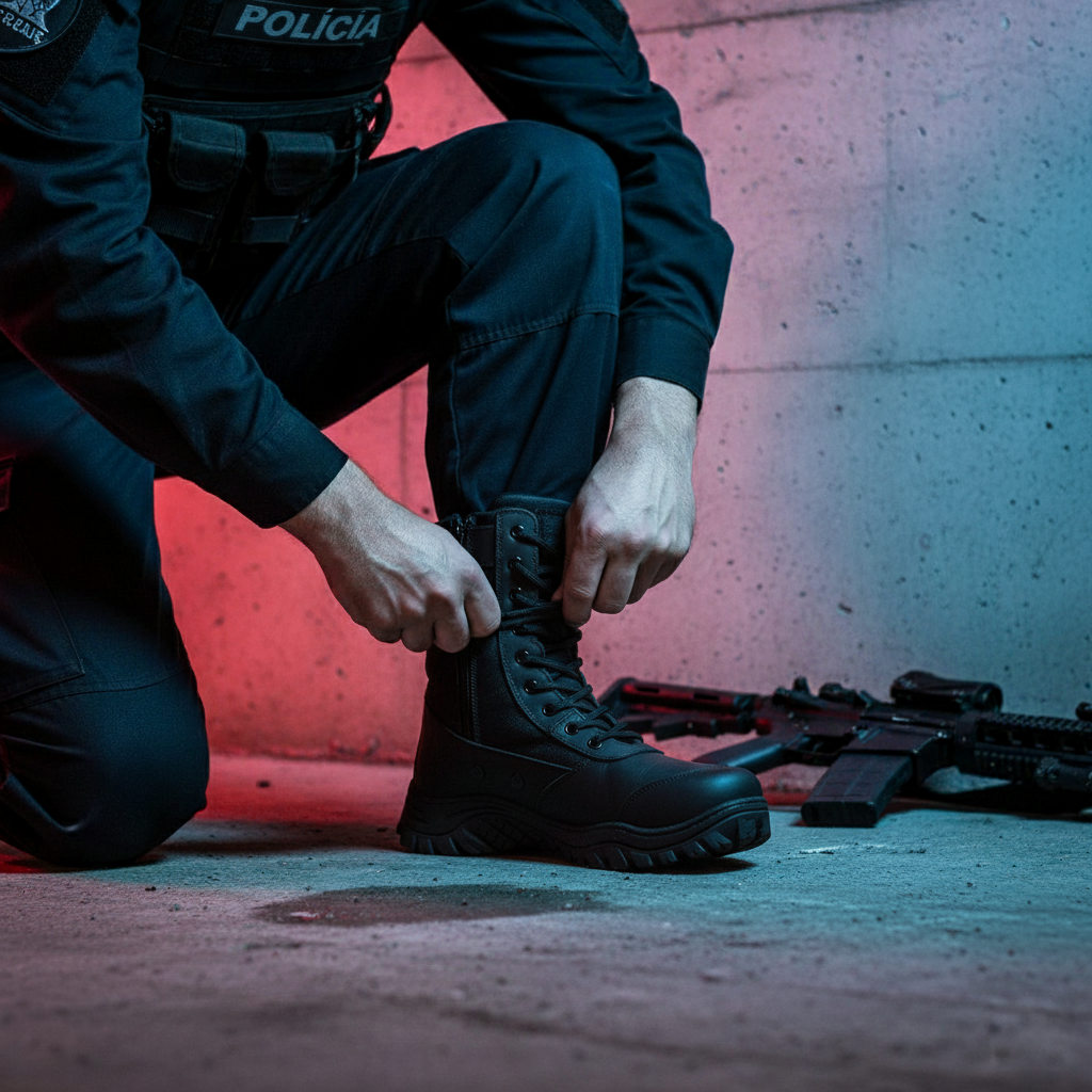 Projetado para alto desempenho em operações táticas e militares, o coturno COYOTE combina resistência, conforto e segurança. Fabricado em couro legítimo, proporciona durabilidade e proteção, enquanto sua forração interna de secagem rápida mantém os pés confortáveis em diferentes condições. O solado antiderrapante e a estrutura reforçada garantem excelente aderência e estabilidade, tornando este modelo ideal para terrenos desafiadores.