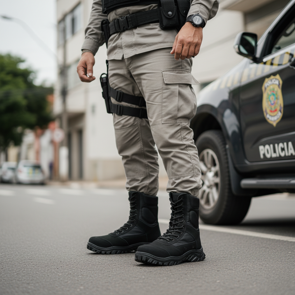 Projetado para alto desempenho em operações táticas e militares, o coturno COYOTE combina resistência, conforto e segurança. Fabricado em couro legítimo Nobuck, proporciona durabilidade e proteção, enquanto sua forração interna de secagem rápida mantém os pés confortáveis em diferentes condições. O solado antiderrapante e a estrutura reforçada garantem excelente aderência e estabilidade, tornando este modelo ideal para terrenos desafiadores.