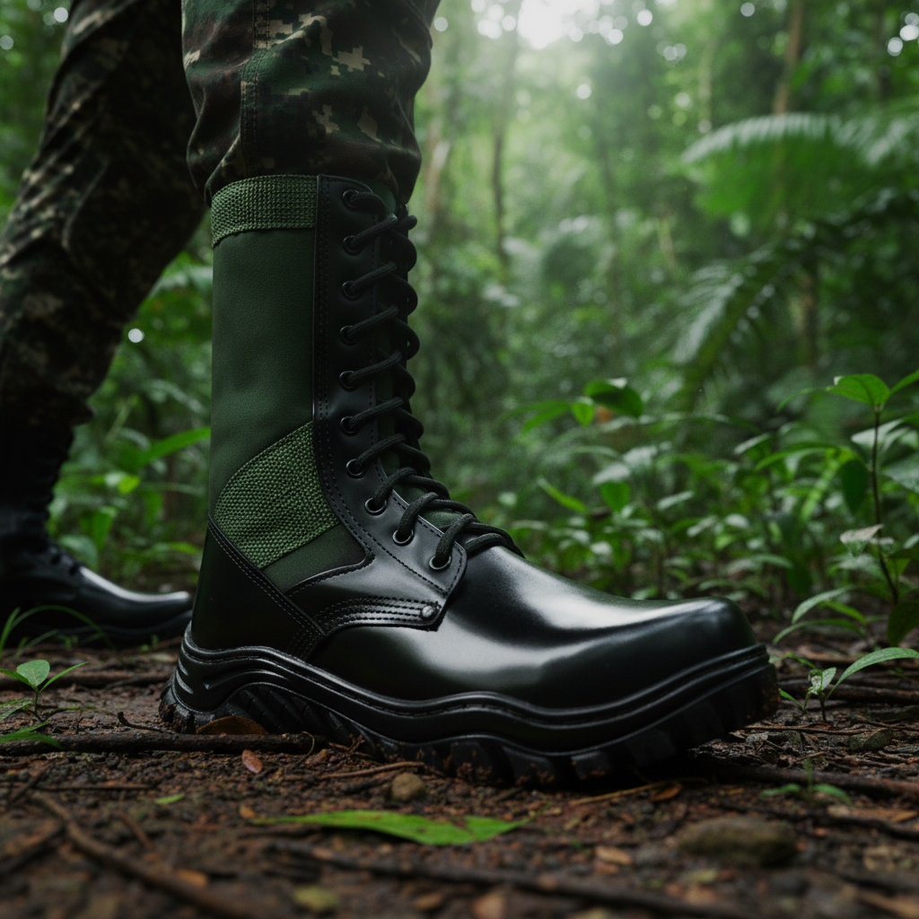O ELITE SELVA BOX ZIPER um coturno de alto desempenho e resistência, desenvolvido especialmente para profissionais que exigem durabilidade, conforto e aderência superior. Confeccionado em couro legítimo de alto brilho na cor preta, alia robustez e sofisticação. Seu cano em lona de algodão proporciona flexibilidade e ventilação, enquanto o zíper lateral garante praticidade no calce.
