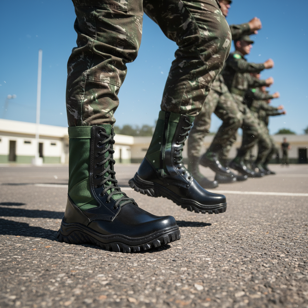 - Após o uso em ambientes úmidos ou molhados, deixe o coturno secar à sombra em local ventilado.