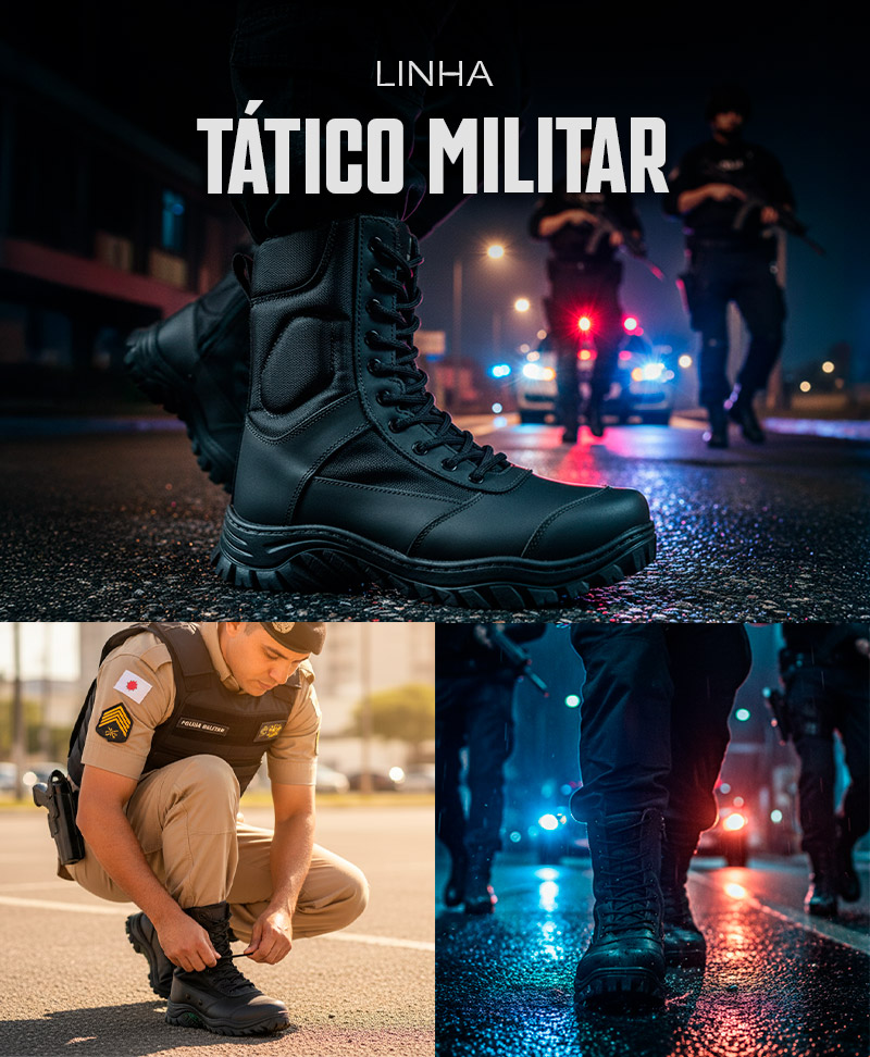 Coturno Tático Preto Emborrachado Zíper | Coyote